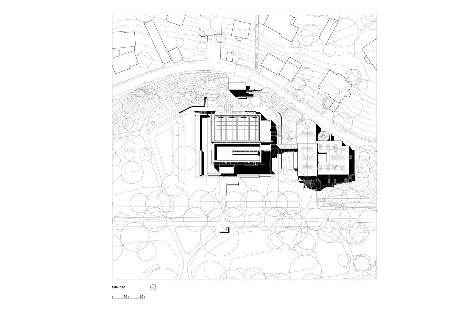 The museum was designed specifically to house the Frieder Burda collection of twentieth-century art. Its site also presented a unique challenge, as the new building had to blend into the landscape of the Lichtentaler Allee Park and—at the same time—harmonize with the classical profile of the adjacent Kunsthalle. In response, the new building is nestled amid the majestic trees of the park, while its overall form and proportions correspond to the elevated plinth and entablature of the Kunsthalle.