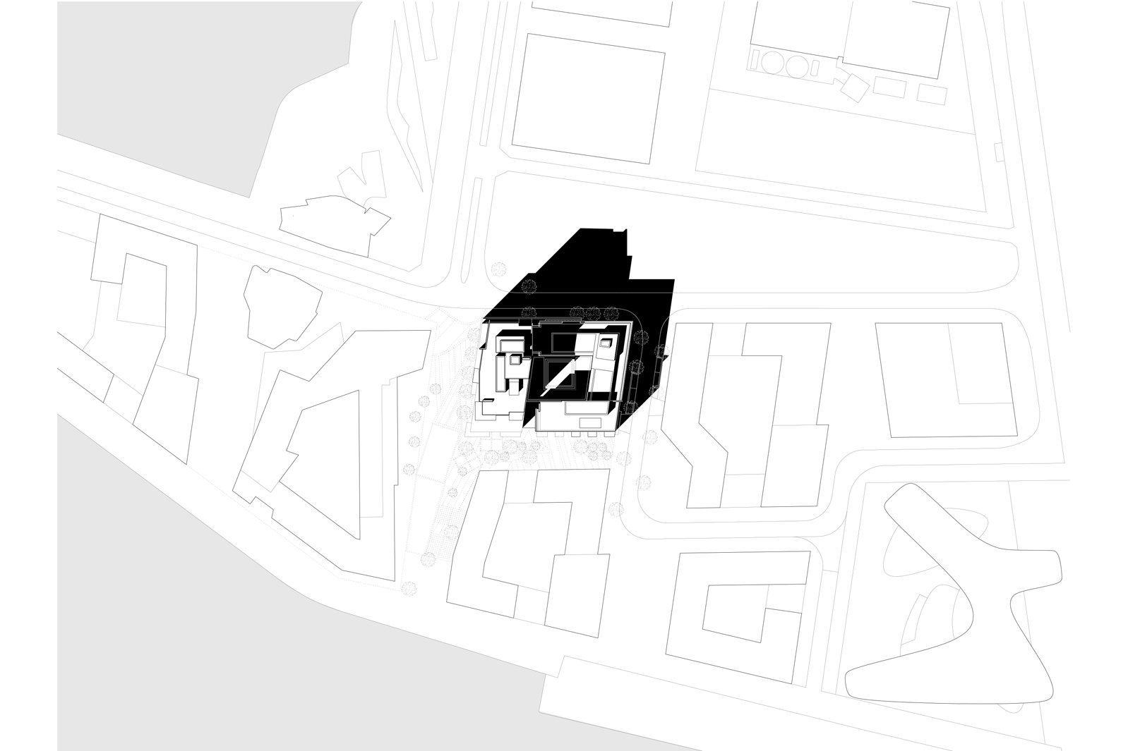 The project’s brief called for the combination of an usually wide range of programs, including the headquarters of a major German real estate company, retail spaces, and apartments. In response, Meier Partners reimagined the traditional European courtyard building as an ideal organizational strategy, uniting these various functions within an exterior that reads as a continuous and evenly articulated shell while simultaneously allowing for an internal organization that provides the maximum benefits for each program in both plan and section.