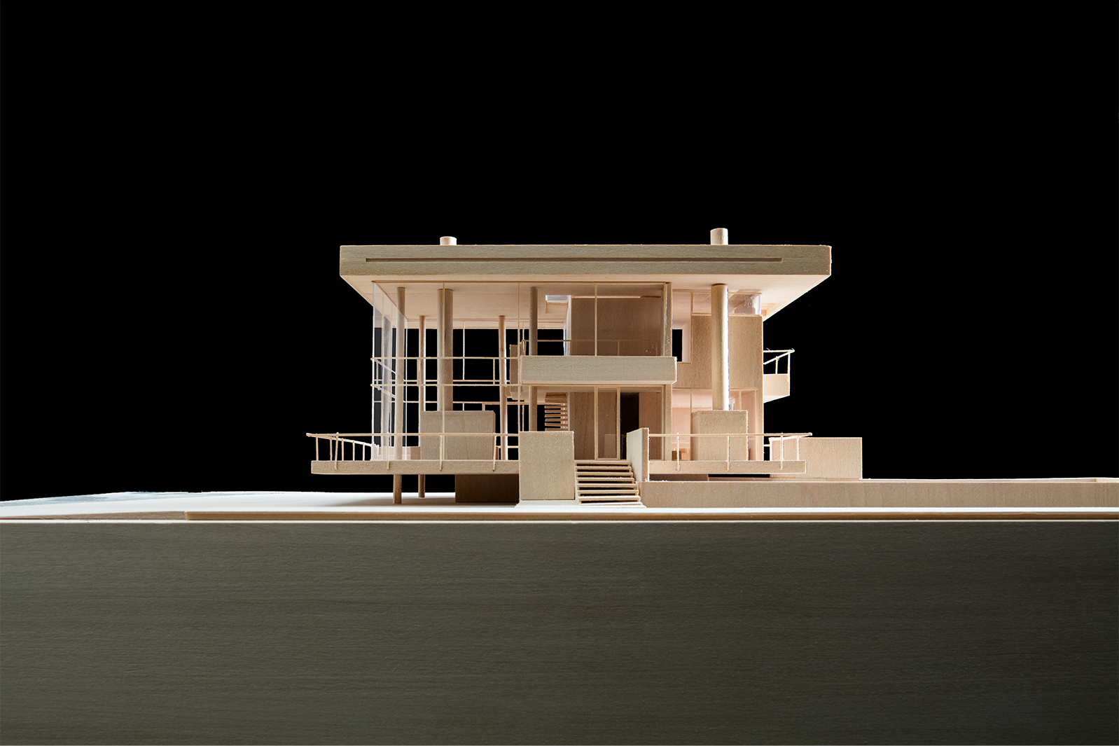 The main house extends across the site connecting to a garden, a swimming pool and accessory pool pavilions. These auxiliary elements are carefully composed to maximize the feeling of openness within the site, while the project’s material palette is minimal and understated, with an emphasis on lightness and transparency—glass, wood, and white finishes reflect the natural colors and beauty of the surrounding bay.