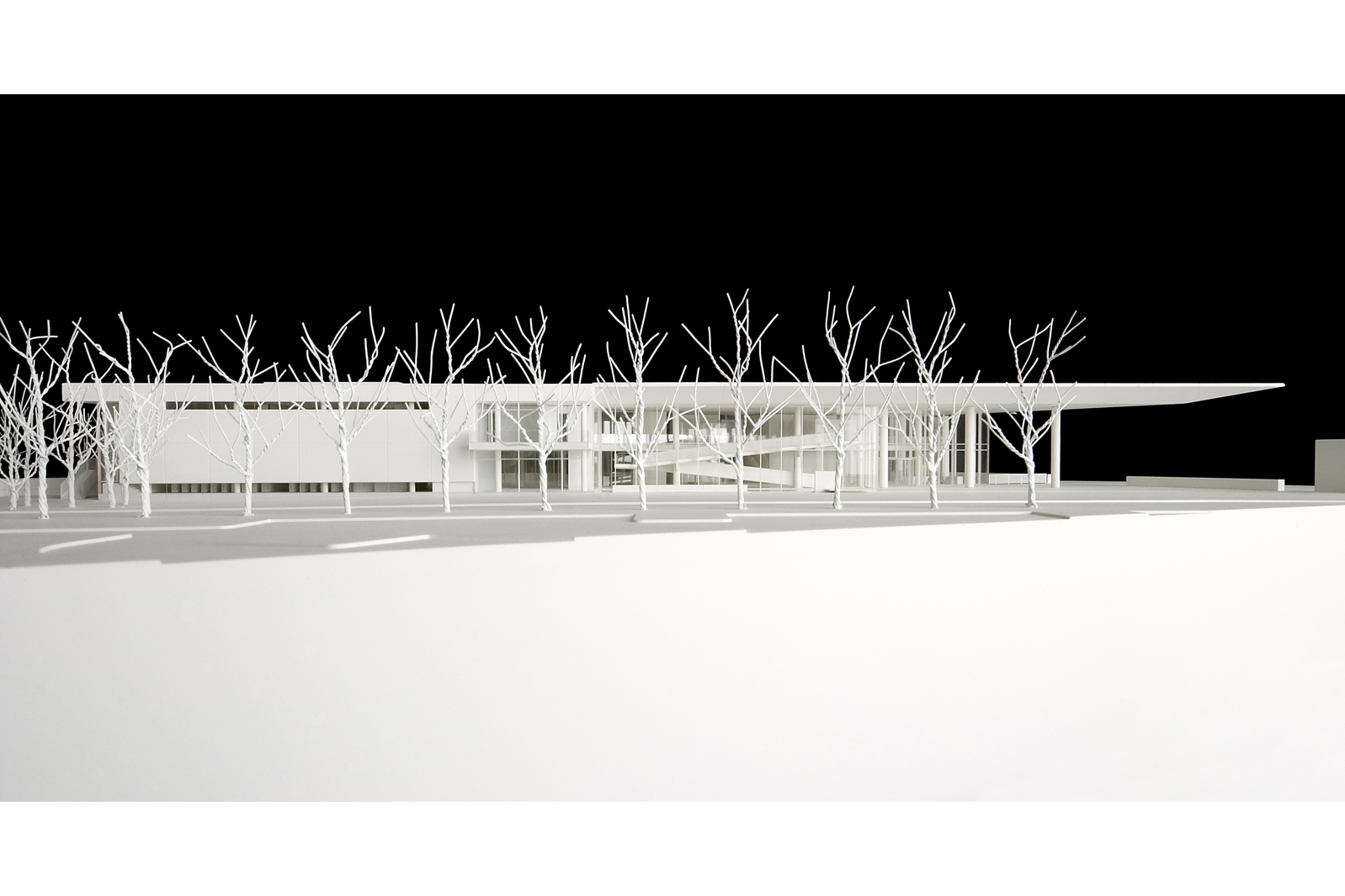 The building’s V-shaped massing reinforces the boundaries of the triangular site and incorporates a program of technical and administrative spaces into two wings that surround a central courtyard. The “public” and “private” halves of the building hinge on a double-height entrance foyer, within which a long and elegant ramp allows circulation between floors. The interior organization of the laboratory wing responds to the highly specific functional requirements of the program, while a simple structural grid and a central circulation corridor allow efficient and flexible layouts for various sectors.