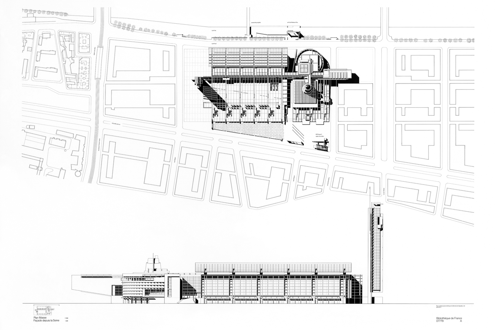 Meier Partners envisioned this proposal for the new French National Library as a vibrant public space deeply interconnected with the surrounding city. The parti is organized around a monumental reading room facing the Seine, an inviting gathering space which recalls Henri Labrouste’s iconic Bibliothèque Nationale of 1868. The entire library campus was conceived as spatially and visually woven into the urban fabric through a combination of long vistas, which would relate the new library to other Parisian landmarks, and a series of footbridges that would span the river an create a close connection to the Parc de Bercy on the opposite bank.